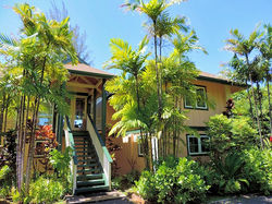 Extensively landscaped grounds with palm, ginger, bamboo, date palms, kamani, Madagascar olive trees, naupaka